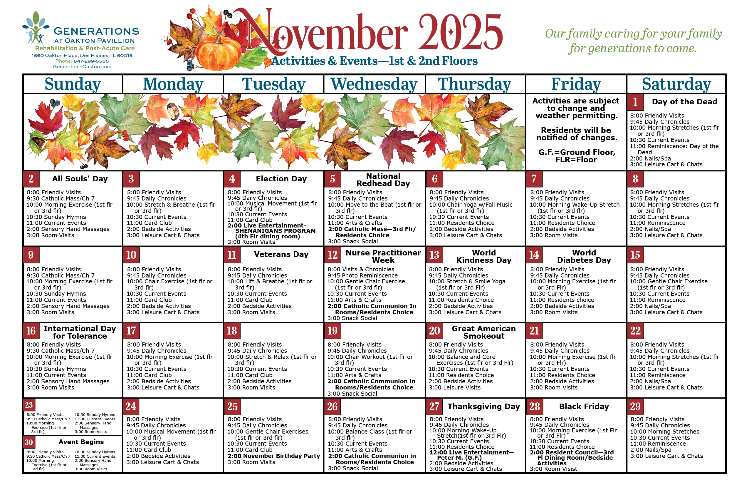 Generations at Oakton offers activities that are stimulating and enriching to the lives of our residents. The activities promote structuring of leisure time and provide opportunities of choice, so that the residents have control of their daily lives.